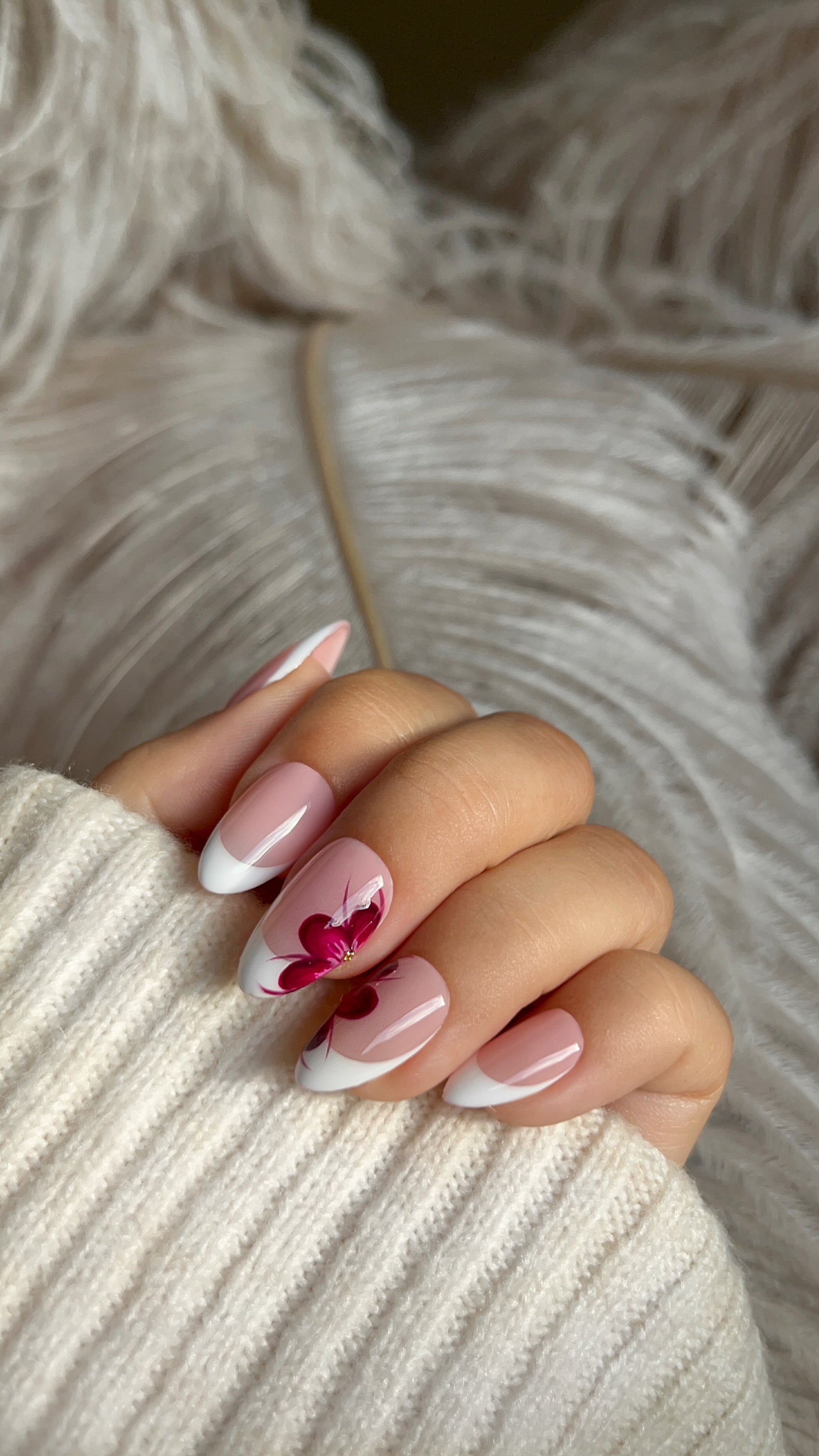 En fransk manicure i sin mest feminine form – med elegante blomster som royalt twist.